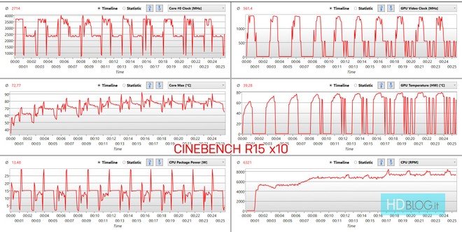 Test eseguiti in modalità massime prestazioni, con alimentato collegato (ad eccezione della misurazione termica).