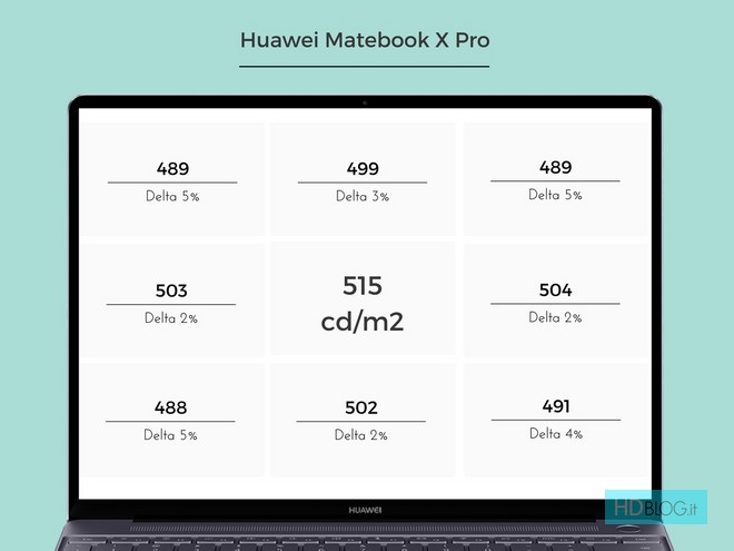 Huawei ha cambiato fornitore del display rispetto a Matebook X; adesso è prodotto da Tianma XM ed ha un rapporto di 3:2 con risoluzione di 3200 x 2000 px (+18% rispetto a 1080p). Ricorda Surface Book 2 e Chromebook Pixel. Arriva con una copertura sRGB del 96% e con buoni valori di DeltaE grigi e colori. Rispetto ai 16:9, gli schermo 3:2 sono più adatti alla produttività web, alla lettura e ai lavori di grafica, perché hanno più spazio verticale e meno bordi. Di contro, mostrano le bande nei video, Netflix e Youtube compresi. Scegliere questo formato su un portatile che ha un "Pro" nel nome ha senso ed è un'idea che condivido, per quanto considero il massimo averlo su un convertibile da tenere in mano.