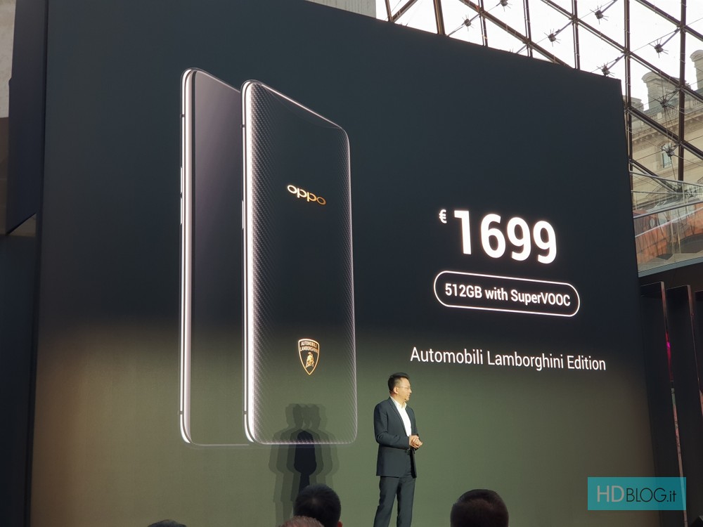 Oppo Find X sarà disponibile da agosto a 999€ anche in Italia in versione 8/256GB. Sarà disponibile anche la versione speciale Lamborghini a 1699€ con 512GB di memoria interna e ricarica SuperVOOC che permette il 100% di autonomia in soli 35 minuti.