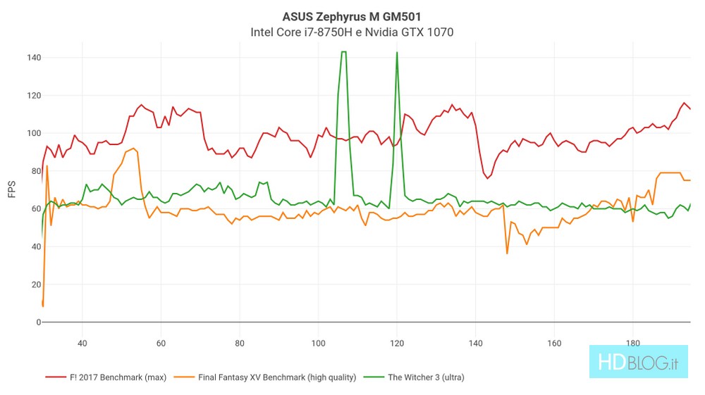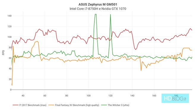 Ecco l'analisi del framerate con The Witcher 3, F1 2017 e Final Fantasy XV, tutti in Full HD con dettagli massimi e G-SYNC attivo.