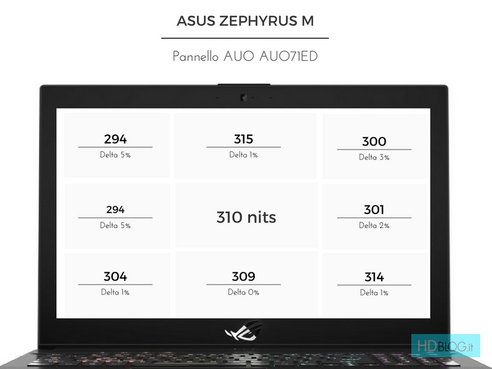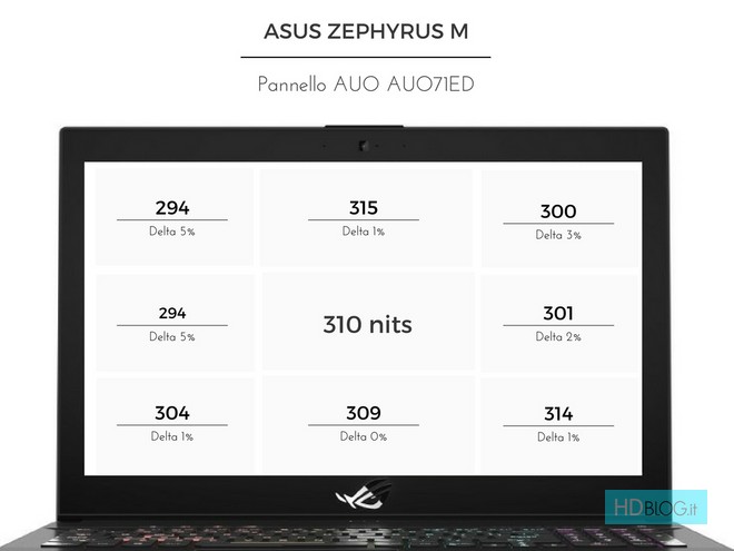 Graficie benchmark a parte, Zephyrus M un portatile di ultima generazione senza problemi prestazionali, noie o difetti di assemblaggio. Basterebbe guardare la SSD Samsung PM961e la Wi-Fi ac di Intel per avere una conferma, ma c' un altro componente a fare la differenza: lo schermo. ASUS installa un pannelloAUO di tipo AHVA (Advanced Hyper-Viewing Angle) appena inferiore ad un IPS per copertura degli angolidi visione ma con tempo di risposta sui 3 ms, paragonabileai TN. un 144 Hz che avrei preferito calibrato con pi cura (sRGB al 94% e una certa tonalit di blu con ogni profilo pre-impostato dall'azienda - vedi schermate sotto, per unDeltaE sballato) e con una luminosit massima insufficiente per il lavoro in esterna (circa 300 nits; su un portatile da gaming comprensibile) ma che riesce adare il meglio quando usato in modalit G-SYNC.
