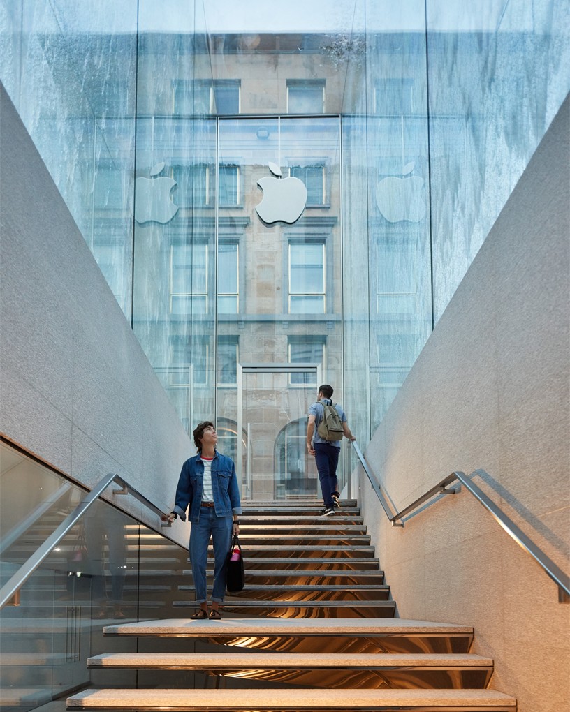 "Lavorare in una delle piazze storiche d'Italia è al tempo stesso una grande responsabilità e una sfida meravigliosa", ha dichiarato Jony Ive, chief design officer di Apple. "Abbiamo combinato due elementi fondamentali della piazza italiana: l'acqua e la pietra, aggiungendo un portale di vetro che crea un'esperienza multisensoriale per i visitatori che entrano nel negozio attraverso una fontana a cascata che sembra avvolgerli".
