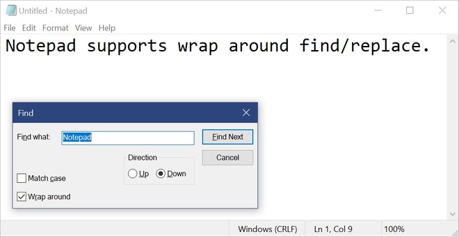 - ora è stata implementata la modalità Wrap-around, ovvero quando si raggiunge la fine del documento si ricomincia dall'inizio.