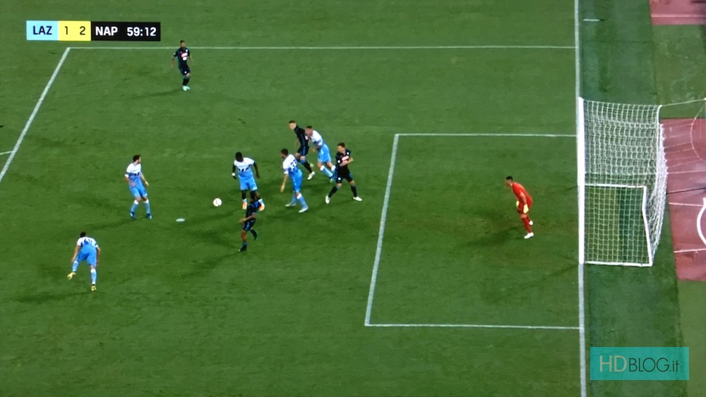 Il quadro era sicuramente superiore ad un segnale in standard definition ma non pienamente convincente per uno streaming in HD. Il livello di dettaglio non era infatti elevato, con le zolle del campo che in alcuni passaggi tendevano a divenire una massa non ben definita. Sempre a proposito del campo abbiamo notato una riproduzione non convincente del verde, un po' scarso come saturazione e anche poco brillante. Sulle linee del campo e in alcuni scritte era inoltre presente un po' di aliasing (quell'effetto che si manifesta come una sorta di scalettatura).