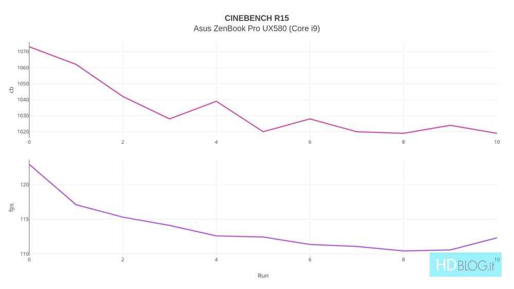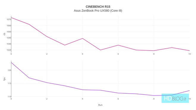 Stesso setup ma con due vincoli: le prestazioni più basse quando non cè corrente, e lautonomia. Il primo, è normale. Il secondo, la durata della batteria, penalizzata da una batteria sottodimensionata. ZenBook Pro UX580 usa una 71 Wh, ed ha due schermi da gestire - non va dimenticato.