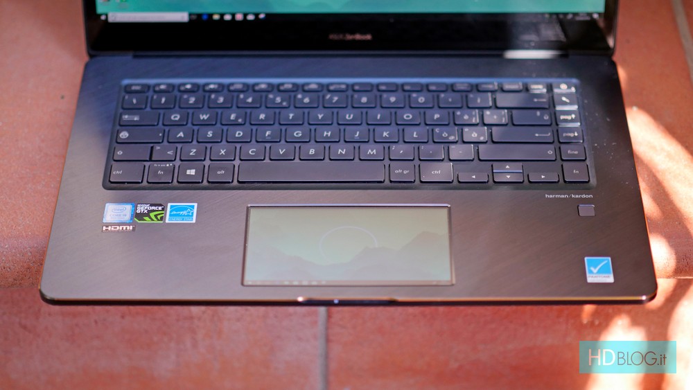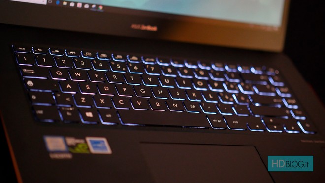 Lergonomia di ZenBook Pro ha scelte davvero riuscite (è uno dei portatili più semplici da aprire grazie a quella grande tacca centrale) e scelte discutibili. Prendo come esempio la tastiera: corsa di 1.5 mm, tasti larghi e retroilluminazione sono cose buone, ma i due Fn (a destra, sposta le frecce direzionali, a sinistra, prende il posto del tasto Windows) e laccensione dove mi aspetto di trovare il Canc, modificano il layout che vorremmo familiare. Inoltre la retroilluminazione poteva essere più omogenea perché i LED che stanno sotto i tasti sono, in alcune parti, più visibili di altre. Mi sto perdendo nei dettagli? Non credo: portatili che aspirano alla perfezione, gli identificativi di quel che unazienda è in grado di dare in un dato momento, non devono avere noie - a maggior ragione quando il prezzo di vendita è tanto importante.