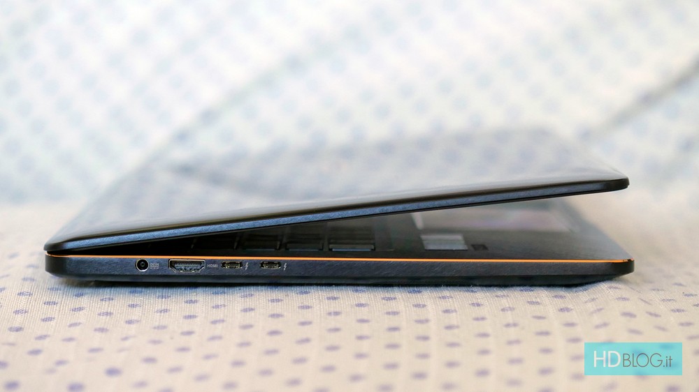 Una delle cose migliori di ZenBook Pro 2018 è la robustezza del telaio. Alcune zone, come il coperchio e il poggiapolsi, usano un materiale metallico, una lega di alluminio, spessa a sufficienza da non ammettere flessioni. Vero che ci sono parti più ballerine di altre (il centro tastiera, ad esempio) ma la sensazione di un portatile massiccio e resistente, quasi sodo, cè sempre. Merito dei 1.9 kg di peso netto (intendo: escluso lalimentatore), e delle finiture effetto spazzolato anche sui bordi così da dare continuità ai cerchi concentrici propri della serie.