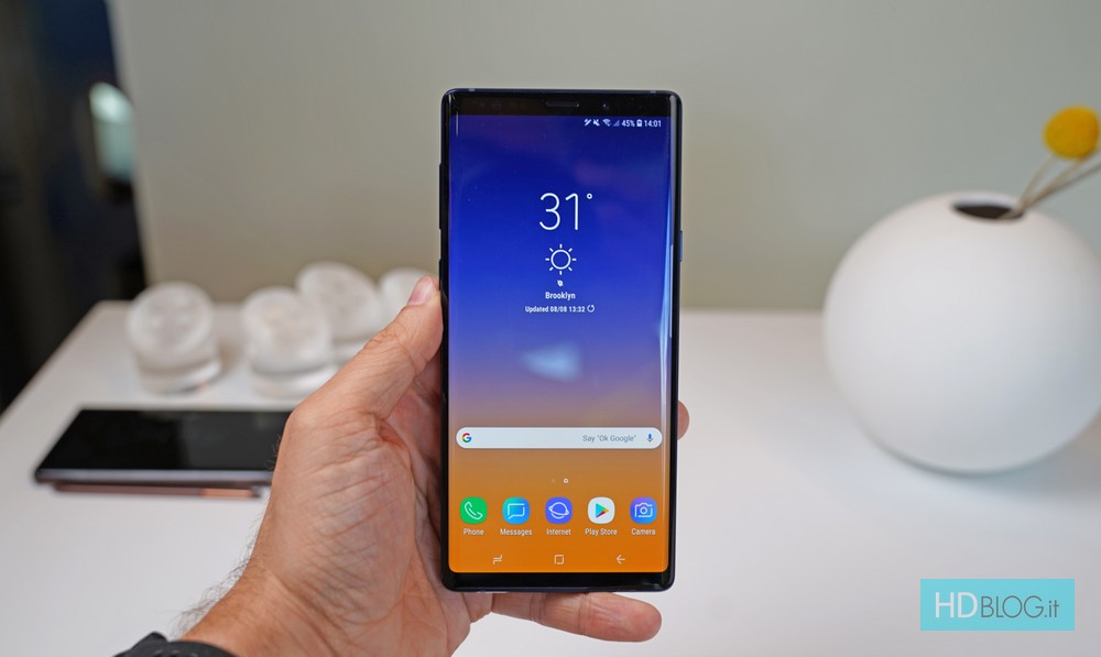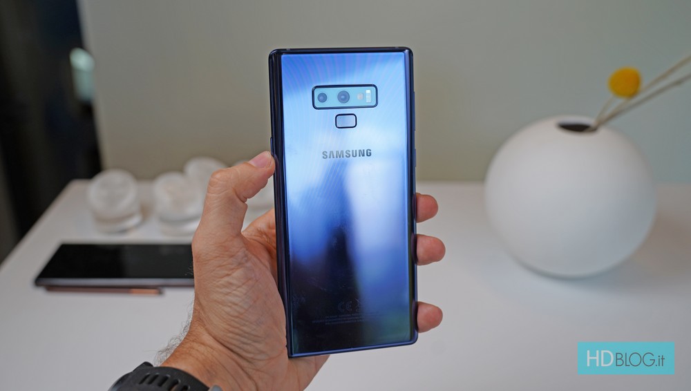 Il design del nuovo Note 9 è davvero molto simile a quello di Note 8 dello scorso anno. Sono stati raffinati alcuni particolari, è stato reso leggermente meno curvo il vetro frontale ed è stato riposizionato il sensore per il riconoscimento delle impronte digitali, che ora si trova sotto il comparto fotocamere e può essere raggiunto in maniera molto più agevole rispetto allo scorso anno.