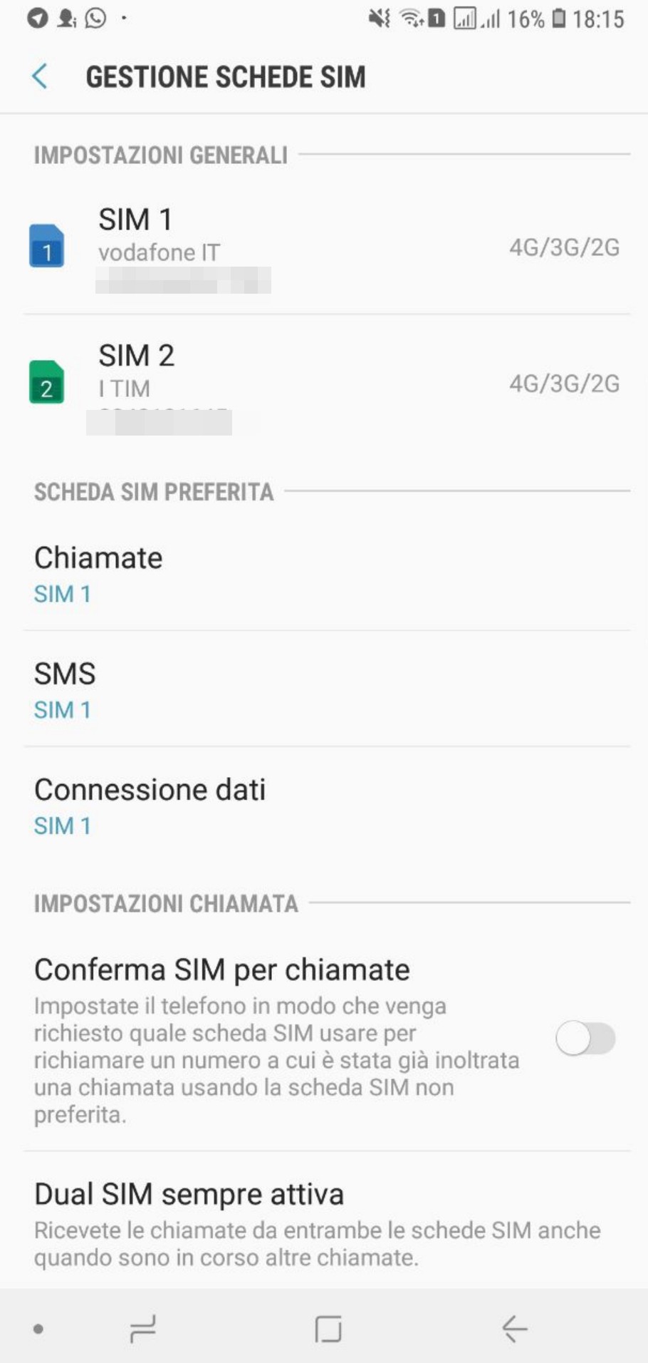 Per il discorso Dual SIM, è full active che vuol dire che le sim sono attive in contemporanea anche quando ricevi una chiamata. Quindi se sei al telefono e ti chiamano sull'altro numero ti da libero e ti arriva l'avviso di chiamata. Entrambe vanno su tutte le reti.