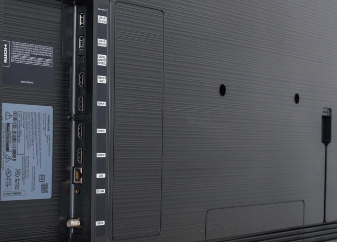 Q8DNnon è provvista di One Connect Box, il set-top box esterno che contiene tutti i connettori e gran parte dell'elettronica. La soluzione proposta è identica a quella dei Q6FN: le porte e gli ingressi sono collocati lungo una rientranza sul retro dei TV. Samsung ha comunque inserito un passa-cavi che consente di realizzare un'installazione più ordinata e pulita.