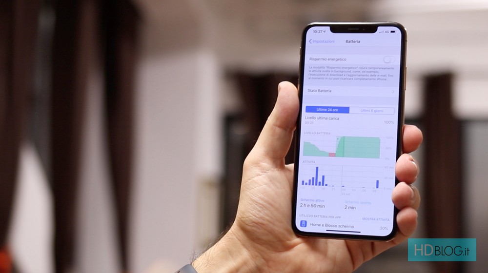 Apple dichiara che iPhone XS Max offre fino a 1,5 ore di autonomia in più rispetto ad iPhone X. Come rilevato anche nel corso del live batteria, mediamente sono riuscito a raggiungere circa sei ore di display attivo su 12 ore di attività. Un risultato tutto sommato buono.