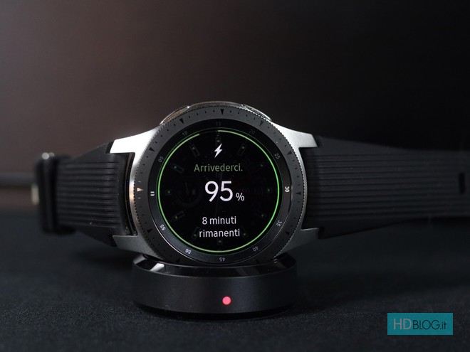 Autonomia che è tutto sommato buona. Diciamo che siamo lontani dai 6 giorni promessi da Samsung ma, con una carica completa della batteria da 472 mAh, riusciamo a raggiungere i due giorni di utilizzo intenso nel caso in cui volessimo utilizzare il Watch con always on attivo e a coprire per intero anche il terzo giorno, e volendo parte del quarto (poi meglio attivare il risparmio), senza attivare quest'ultimo. Considerando anche i risultati che stiamo ottenendo con le proposte della concorrenza (leggi Apple Watch 4) si tratta di un dato sicuramente soddisfacente.