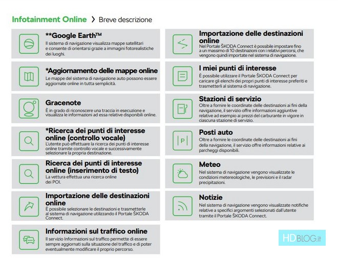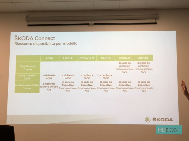 Nell'immagine qui sopra sono invece riassunti i prezzi dei servizi Skoda Connect per ogni modello.