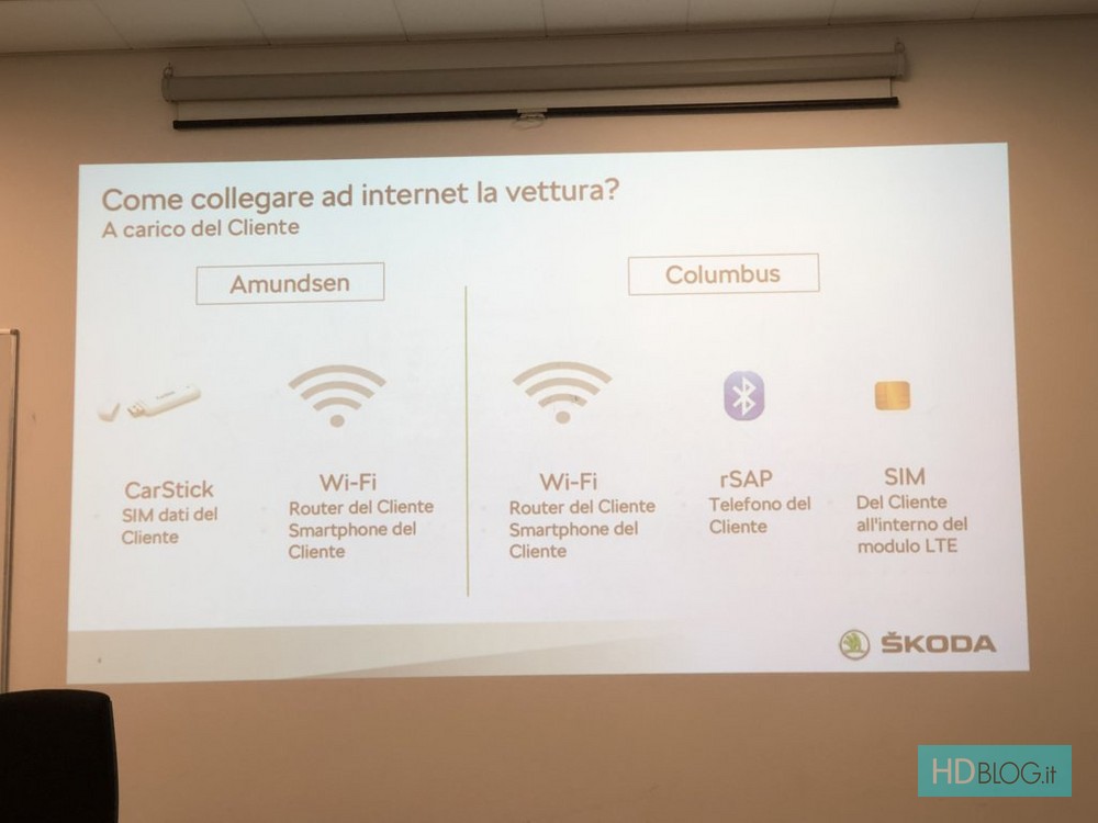 Sulla versione top di gamma Columbus - quella con schermo da 9,2 pollici dotato anche di comandi gestuali - la rete dati permette inoltre di scaricare gli aggiornamenti delle mappe del navigatore. In questo caso, in Skoda ci hanno assicurato che la quantità di megabyte richiesti è commisurata con gli attuali piani offerti dalle compagnie telefoniche.
