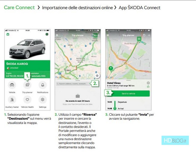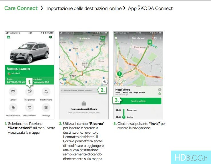 Si tratta di funzionalità come quella che permette di pianificare un'itinerario (o semplicemente cercare una destinazione) sul proprio smartphone o PC, per poi inviarlo via internet direttamente al sistema di infotainment della vettura. Così, una volta saliti a bordo, non basterà altro che premere "Avvia" sullo schermo per avviare la navigazione.