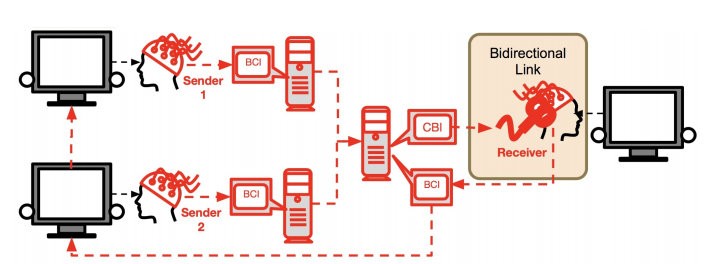 Alcuni ricercatori hanno sviluppato una rete di interconnessione cerebrale che ha permesso a tre persone di inviare e ricevere informazioni direttamente tramite i propri cervelli per attività di problem solving. Telepatia? No, solo il frutto di una tecnologia modulare basata su elettroencefalogrammi (EEG) e stimolazione magnetica transcranica (TMS).