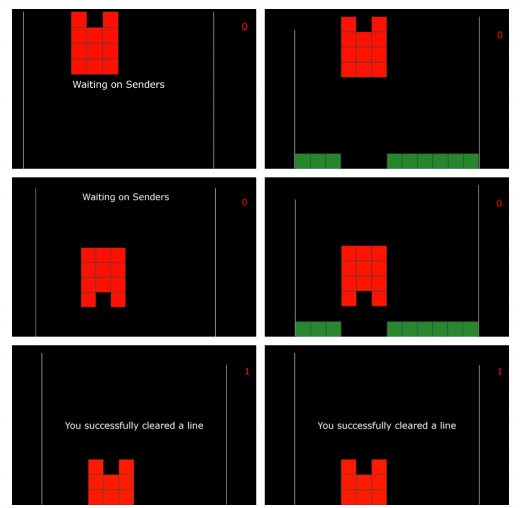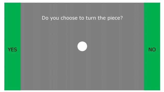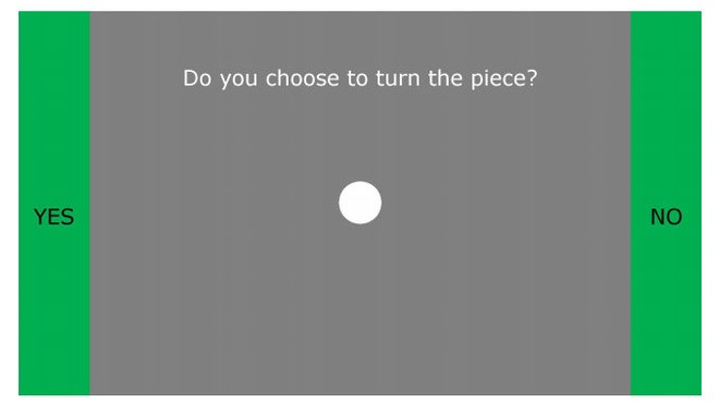 Le due persone che inviano i segnali possono vedere lo schermo di gioco, mentre la terza - che riceve i loro segnali e deve decidere se ruotare il blocco o meno - vede solo la metà superiore della schermata di gioco, da cui scendono i blocchi. I due "mittenti" devono quindi inviare l'impulso corretto per vincere la partita: possono farlo fissando alternativamente i due LED posizionati ai lati del loro schermo, uno a frequenza 15 Hz (che indica di ruotare il blocco) e uno a 17 Hz (che indica di non ruotarlo).