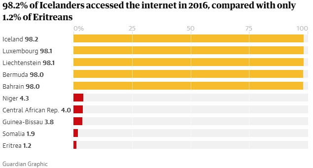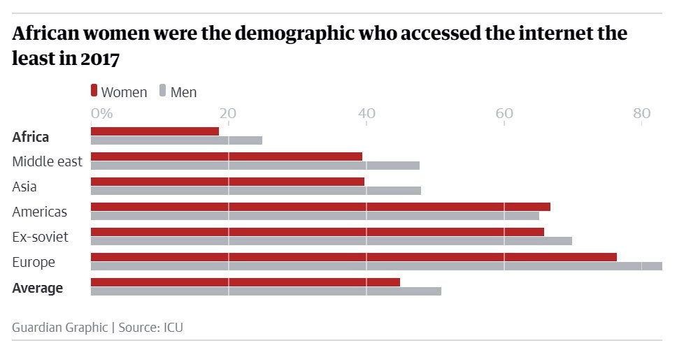 La testata britannica infatti ha avuto occasione di consultare un report basato sui dati delle Nazioni Unite che sarà pubblicato il mese prossimo da Web Foundation, un'organizzazione fondata da Tim Berners-Lee, l'inventore del world wide web. Secondo quanto riferito, il ritmo di crescita del progressivo accesso a Internet ha avuto una brusca battuta d'arresto a partire dal 2015, precludendo a donne e comunità rurali le opportunità offerte dalla rete.
