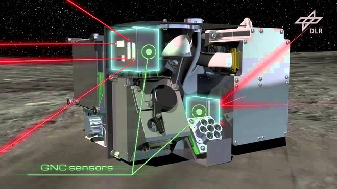 Chiudiamo infine con una gif composta da 3 fotogrammi, che mostra lo sgancio di Mascot verso la superficie, ben visibile nel terzo frame.