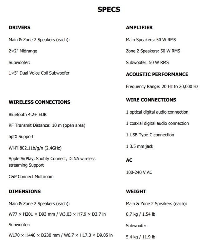 Se dunque la costruzione è ok e il design piacevole, interessante la scelta di usare la Type-C per tutte le casse (anteriore destra e posteriore destra e sub - utile anche per aggiornamenti software) e di rendere wireless i set +2 che possono essere collegati al kit base 2.1. Le M6 hanno infatti la particolarità di essere modulari e quindi potrete, in qualsiasi momento, ampliare il vostro setup con 4 o 6 casse in totale.