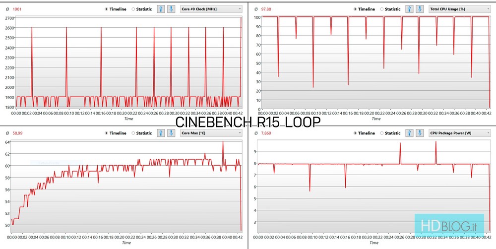 Test eseguiti in modalità massime prestazioni, con alimentatore collegato (ad eccezione della misurazione termica).